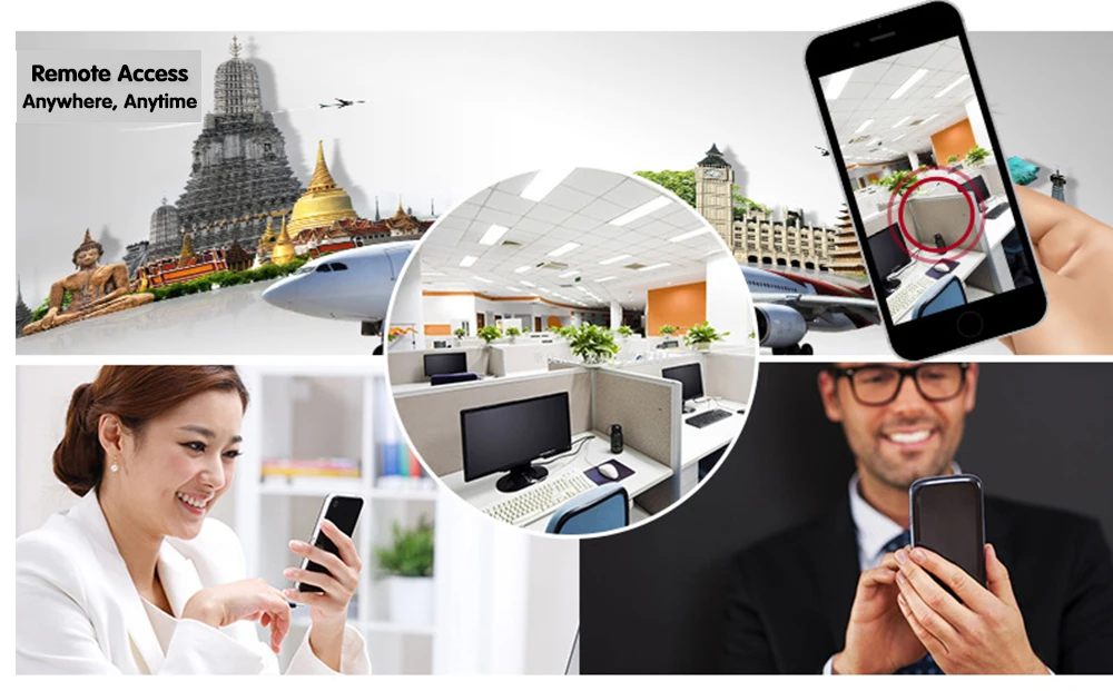 No matter where you are, you can remotely access the camera to see live streaming and stayconnected.Remotely view the camera via: free Xmeye App on your mobile device, free CMS/VMS Client on your computer, IE web browser Etc.