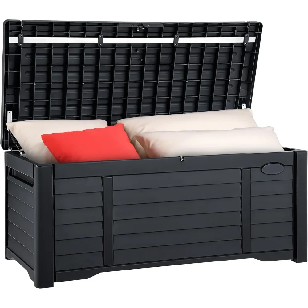 "120 Gallon Outdoor Storage Deck Box - Waterproof Lockable Bench w/ Cushion, Patio & Garden Storage Solution"