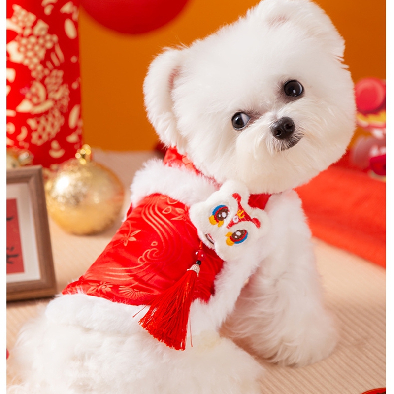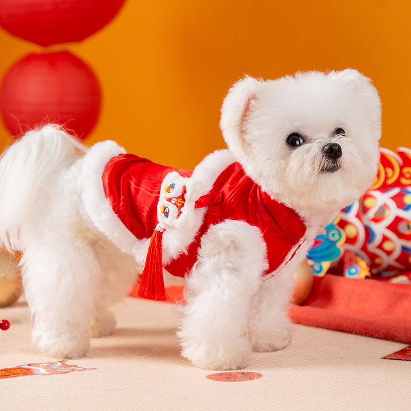 Autumn And Winter Dog, Lion Dance, Tassel, Button-up, Chinese Two-legged Tang Suit, Cat, Warm New Year Cotton-padded Clothes, Pet Dog Clothes